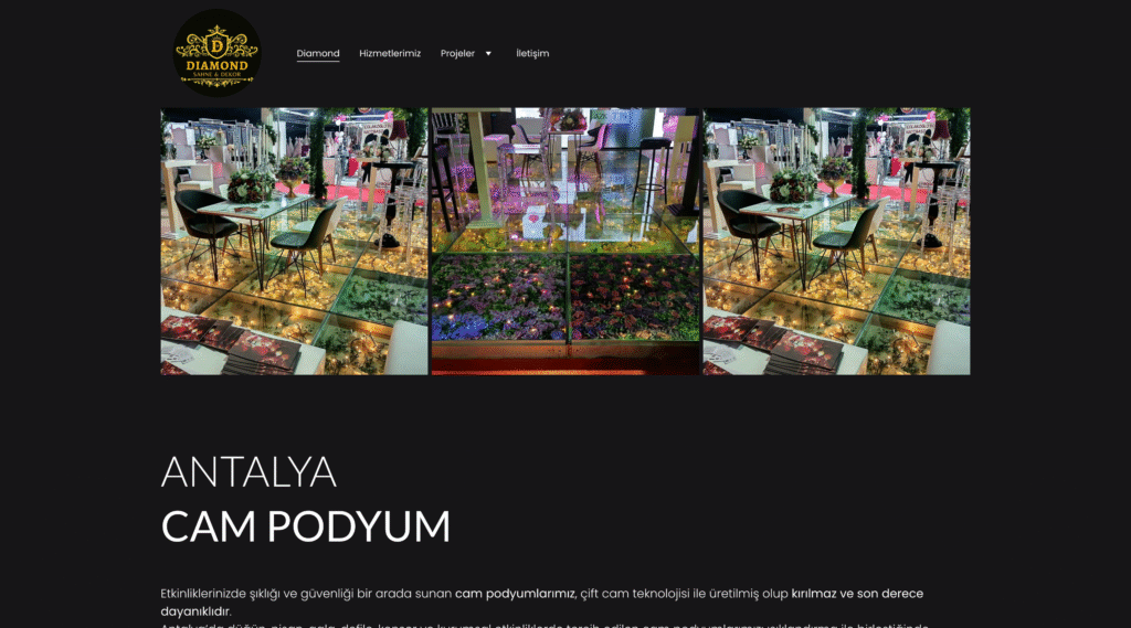 Sahne dekorasyonu ve etkinlik tasarımında fark yaratan Diamond Sahne Dekor olarak, dijital dünyadaki güçlü varlığımızı oluşturmak için Kutlu Selen ile çalıştık. İşimizi en iyi şekilde yansıtan, şık ve kullanıcı dostu bir web sitesi ihtiyacımız vardı ve Kutlu Selen bu konuda beklentilerimizin de ötesine geçti.